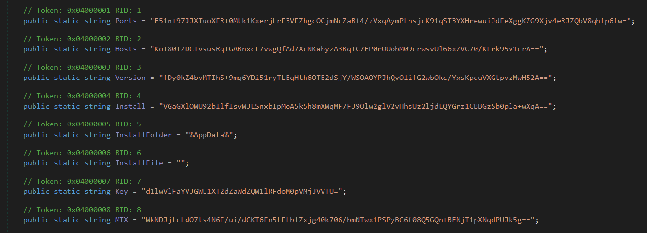 I am not 100% on this, but I analysed a few samples for this blog and found the encryption key to be exactly the same, and nothing in the builder suggests you can change it, some food for thought around signituring. The AES Key can be found in the Client.Settings