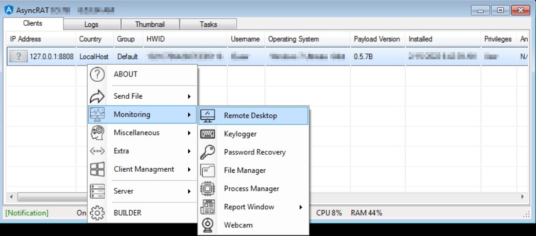AsyncRAT is a remote access trojan (RAT) built to remotely monitor and control other computers through a secure, encrypted connection. The name “AsyncRAT” comes from its core functionality—’async’ means it performs its operations asynchronously, which means it is capable of executing several tasks simultaneously. AsyncRAT has been observed as being bought, sold, and deployed for years, going through many versions and renditions. Functionality associated with AsyncRAT includes keylogging, remote desktop control, and the ability to enumerate a victim machine and exfiltraing stolen data - among other fucntionality.