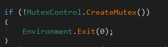 AsyncRAT also has a check to ensure that it doesn’t have more than one version of itself running at the same time, it does this by creating a unique Mutex key, which is stored in the Client.Settings